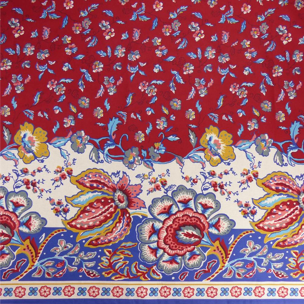 Nappe Grenat Rectangulaire Coton Placée motif "Champêtre"